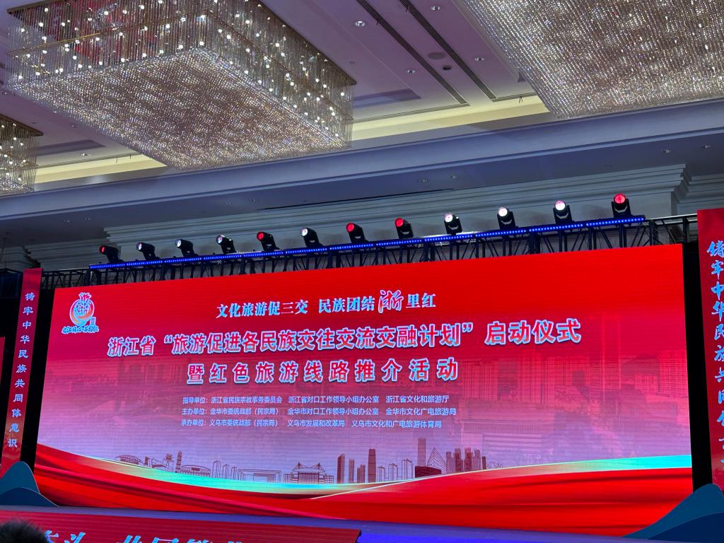 8月17日下午,浙江省“旅游促进各民族交往交流交融计划”启动仪式暨红色旅游线路推介活动在义乌市幸福湖国际会议中心召开,省委统战部副部长鲍秀英、金华市委常委、统战部部长王志强、义乌市委常委、统战部部长贾以鸣等领导出席,beat365在线唯一官网党委负责人、创意园相关负责人受邀参加本次活动。