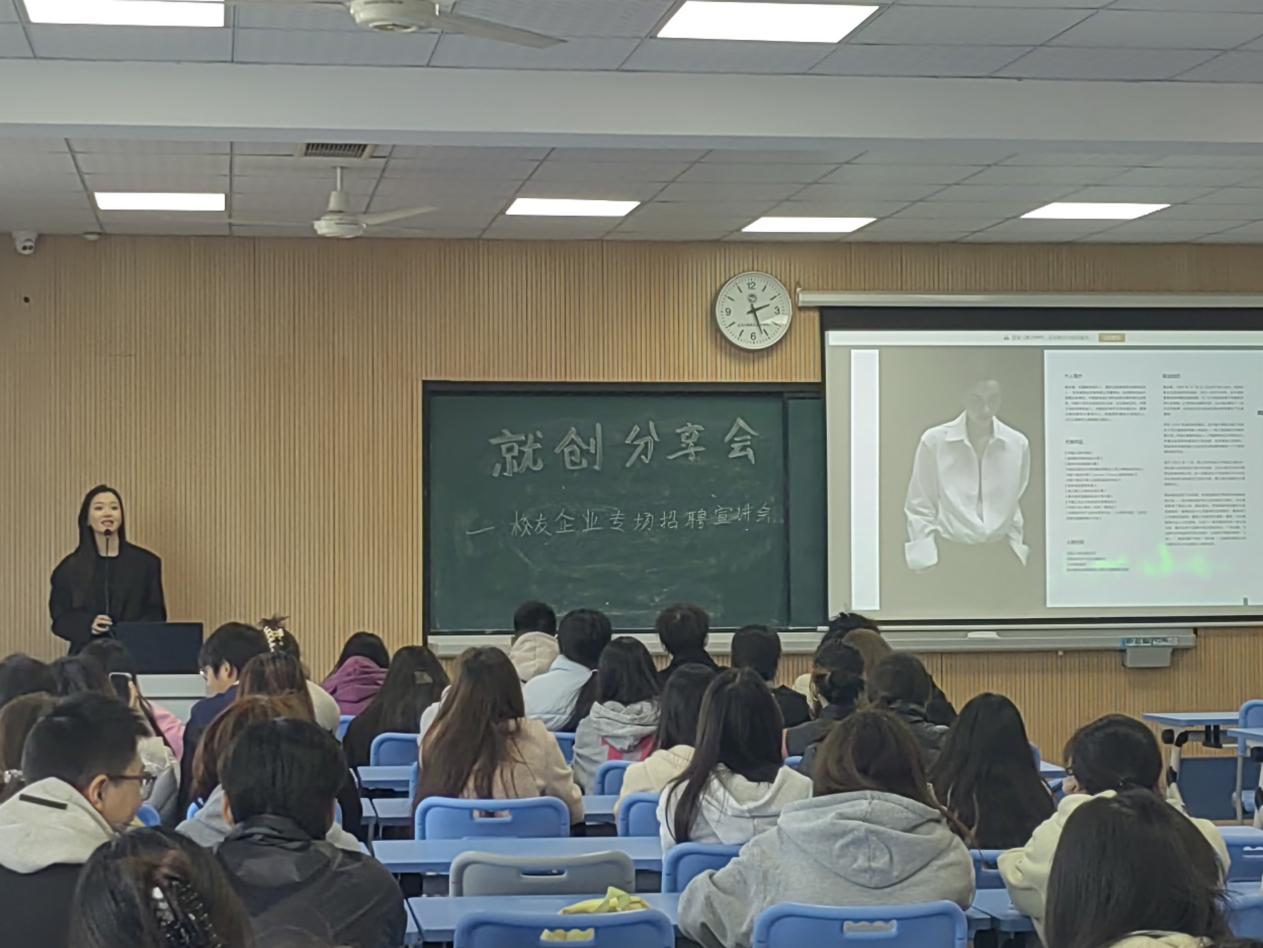此次活动汇集了杭州星驿动传媒有限公司、浙江与时工业设计有限公司、金华桃溪米日用品有限公司等5家优秀校友企业,行业领域包含产品设计、时尚模特、跨境电商等,为毕业生与在校生提供了丰富多元的岗位信息与发展机遇。宣讲期间,校友们更是与在场同学深入交流、分享了各自的创业经历和企业发展的动人历程,帮助同学们了解行业趋势,明确职业方向。
