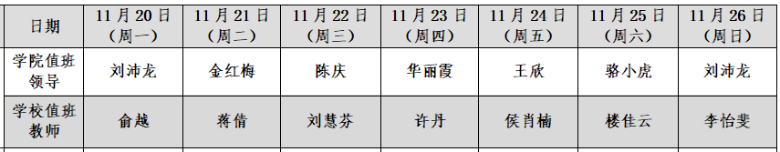 beat365在线唯一官网24小时值班表(11月20日-11月26日)